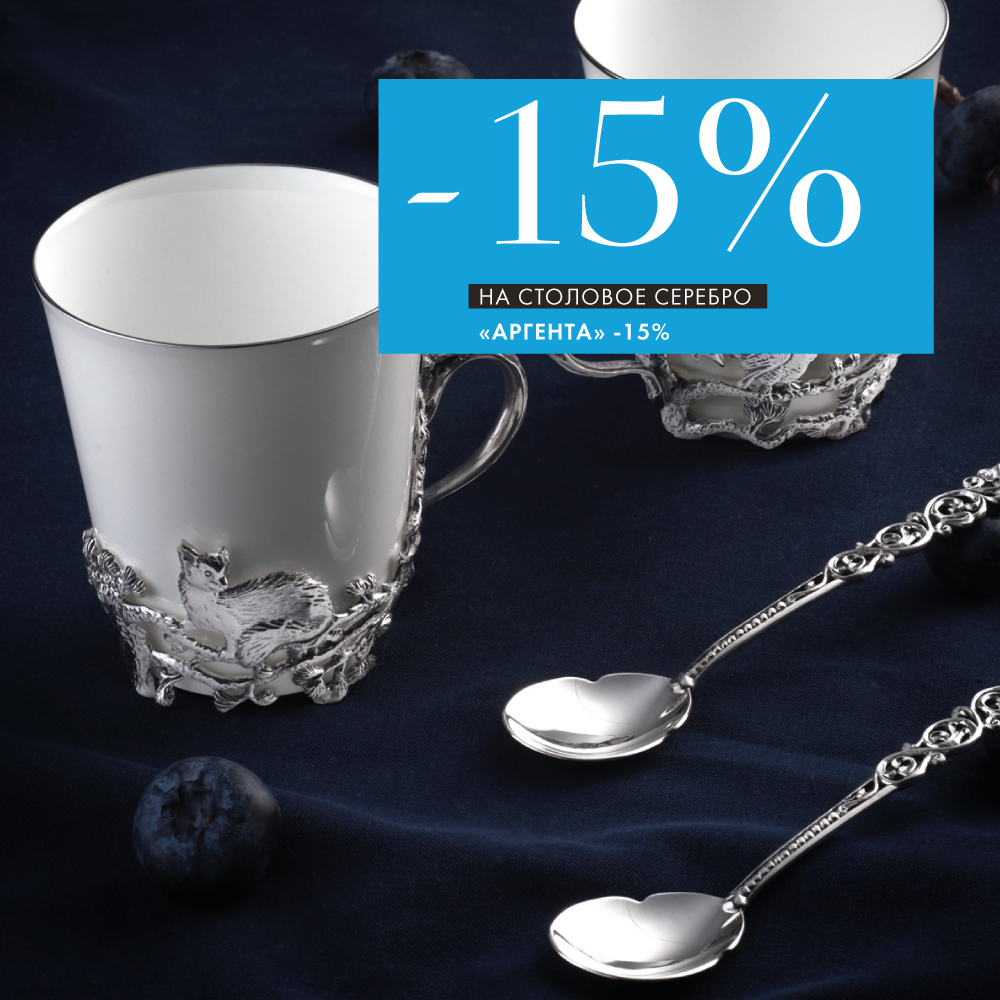 С 14 по 27 октября у вас есть уникальная возможность приобрести столовое серебро бренда «Аргента» со скидкой -15% при покупке изделий от 10 000 рублей.