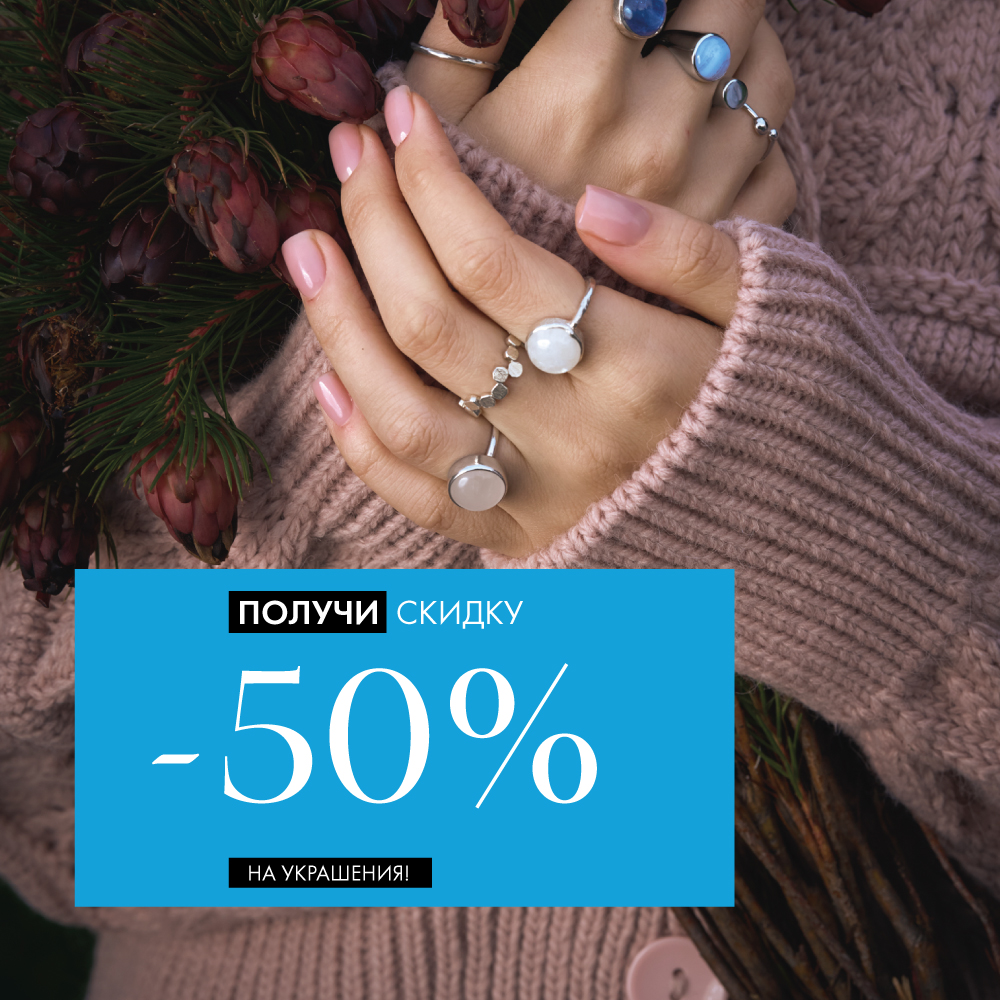 С 14 по 19 января в «Стильном Серебре» — скидка 50% на весь ассортимент украшений! Это идеальный момент порадовать себя и своих близких.