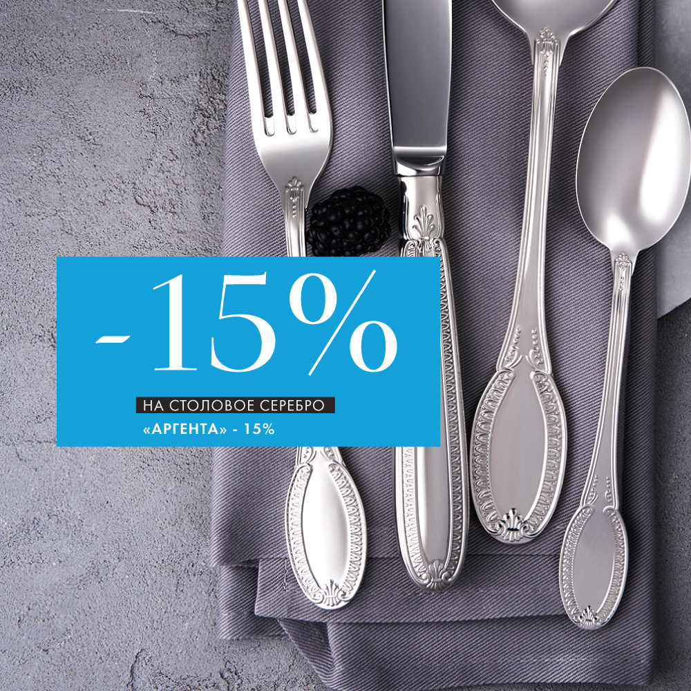 Скидка 15% на коллекцию столового серебра «Аргента» ждет вас до 19 мая.