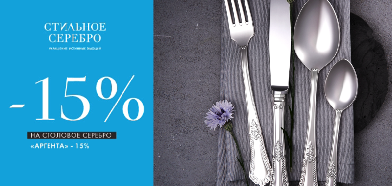 До 14 апреля в наших магазинах и на сайте действует скидка -15% на столовое серебро от известного бренда «Аргента». Порадуйте себя и своих близких новыми деталями интерьера, которые добавят вашему дому элегантности и уюта.