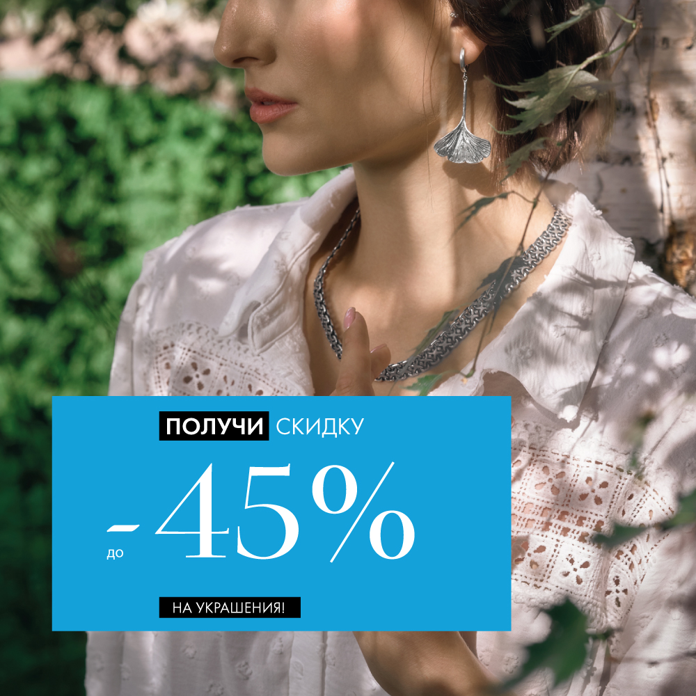 До 6 мая в сети «Стильное Серебро» действует скидка 45% на все украшения.