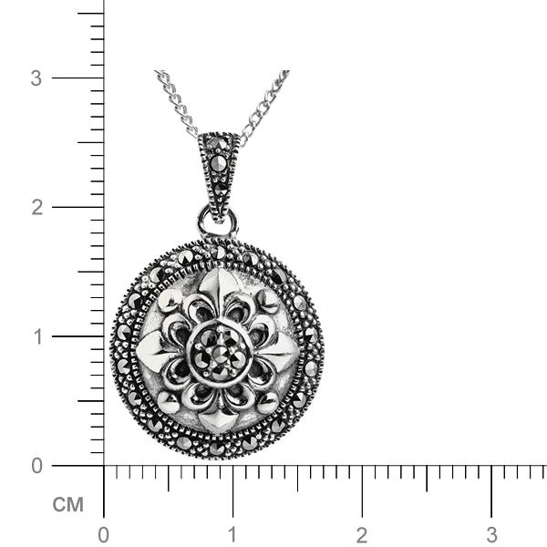 Привлекает внимание сочетание родированного и оксидированного серебра в узоре кулона.