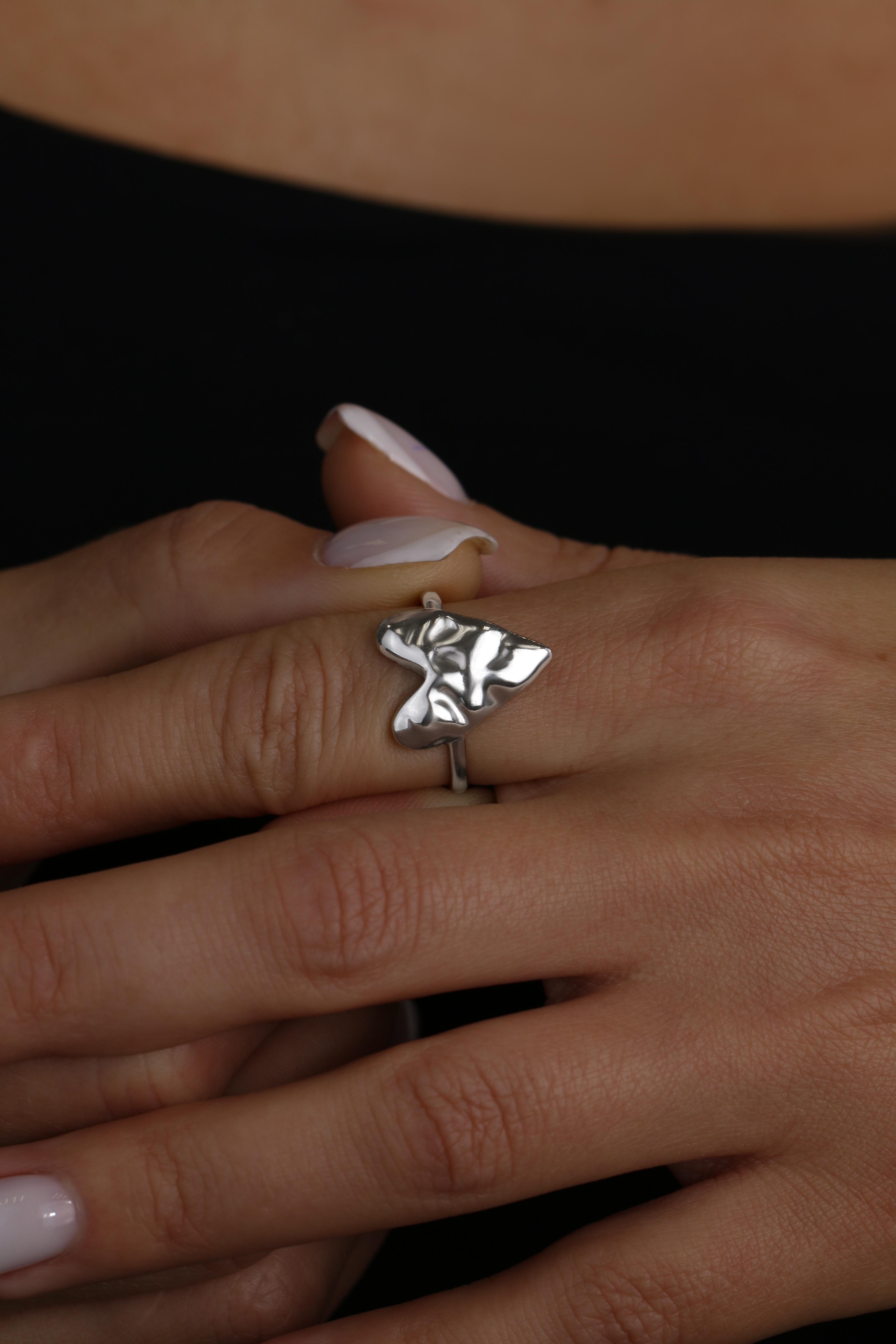 Изысканное кольцо в форме сердца из серебра 925‑й пробы — это не просто украшение, а миниатюрное произведение ювелирного искусства. Особая техника обработки металла создаёт эффект «мятой» поверхности, придавая изделию неповторимую текстуру и глубину.