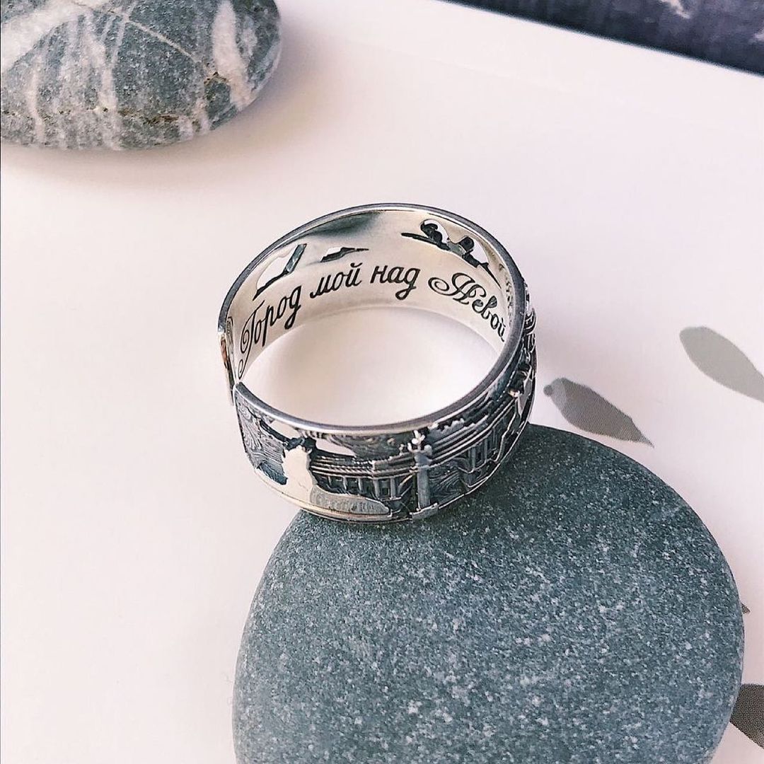 Серебряные украшения издавна наделяли магическими свойствами. О пользе серебра было известно даже древним грекам, хранившим жидкости в посуде из этого благовоздействующего материала. За счёт особенностей серебра кольцо «весь Петербург» может стать надёжным талисманом. Украшение является безразмерным и подходит как для женщин, так и для мужчин.
