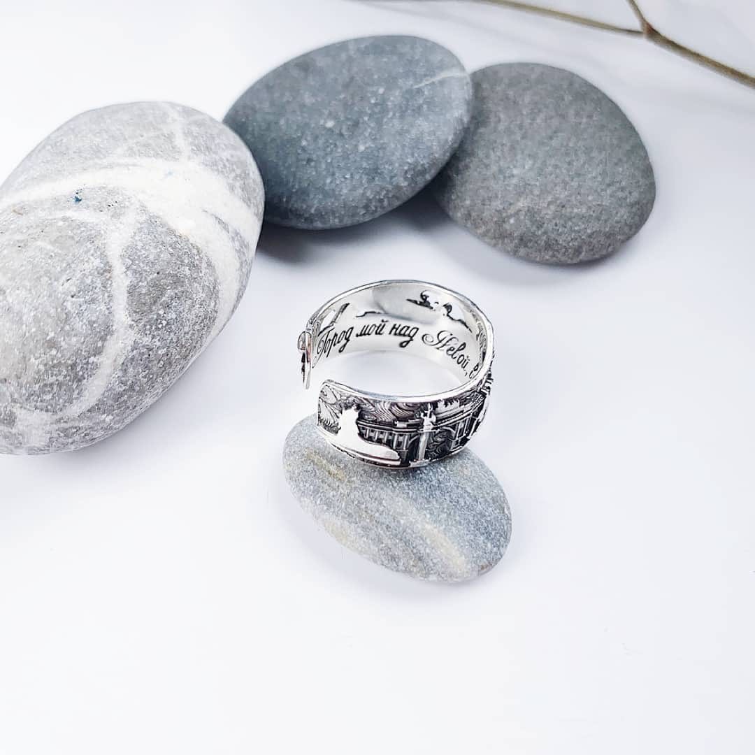Серебряные украшения издавна наделяли магическими свойствами. О пользе серебра было известно даже древним грекам, хранившим жидкости в посуде из этого благовоздействующего материала. За счёт особенностей серебра кольцо «весь Петербург» может стать надёжным талисманом. Украшение является безразмерным и подходит как для женщин, так и для мужчин.