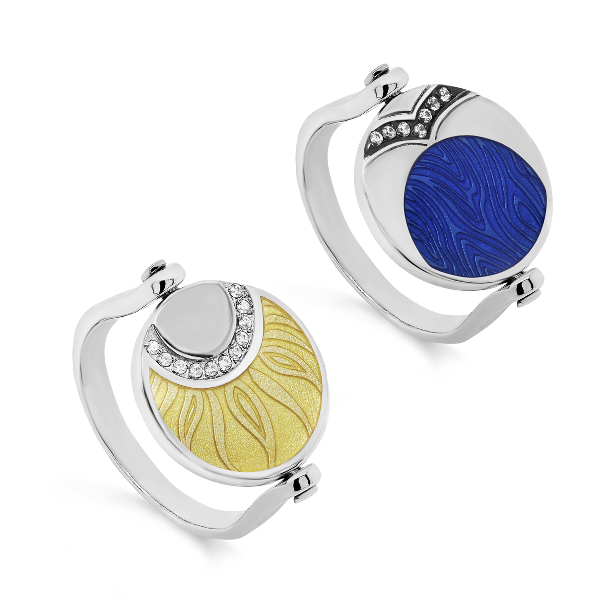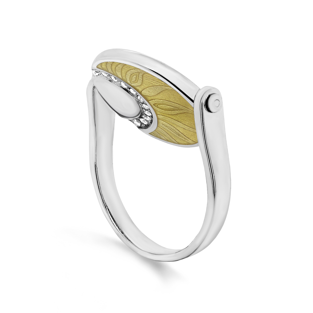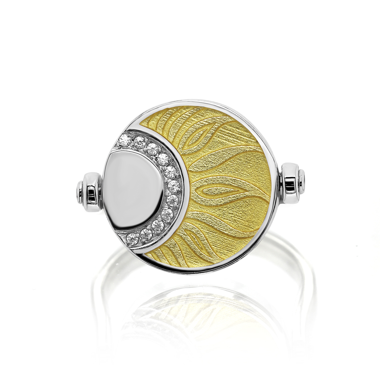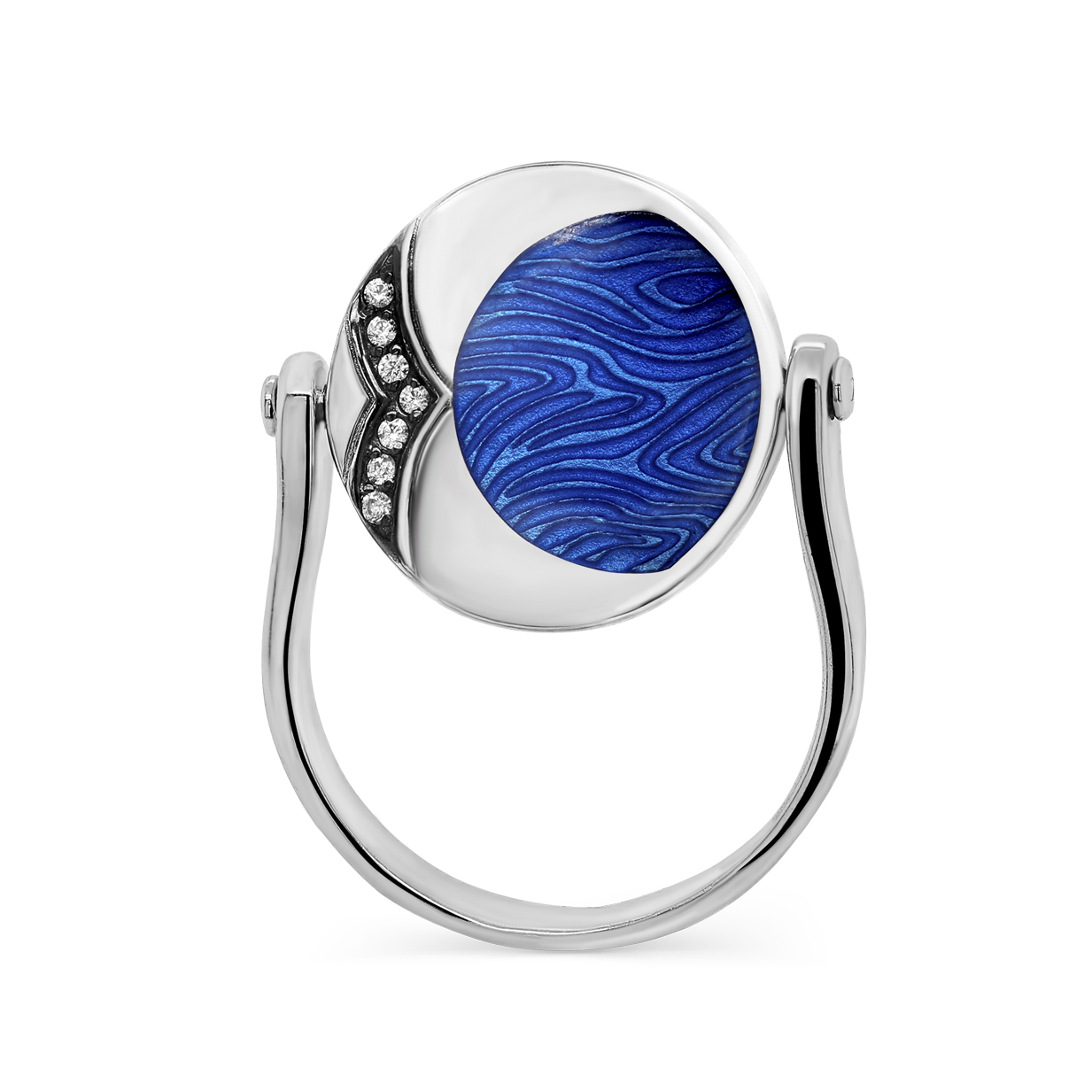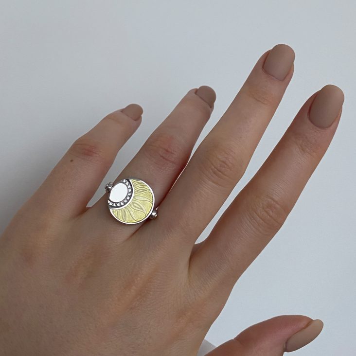 Кольцо из серебра 925 пробы с фианитами и холодной эмалью от российского бренда Kabarovsky. Ювелирная/холодная эмаль – это техника нанесения эмалевых красок на поверхность золота и серебра равномерным слоем с краткосрочным запеканием в печи при сравнительно невысоких температурах. Ювелиры Kabarovsky искусно адаптируют эту технику-наследие великого дома Фаберже, облачая её в современное исполнение. Это кольцо дополнит любой образ — эмаль будет удачно и выигрышно дополнять как летящий летний сарафан, так и офисный строгий костюм..
