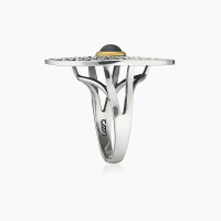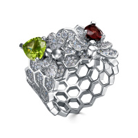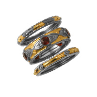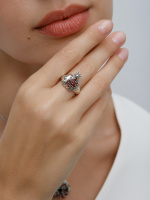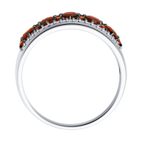 В текущем сезоне популярные серебряные кольца с гранатом мастера дополняют россыпью прозрачных фианитов. Такая комбинация усиливает контраст металла и темного камня.