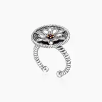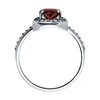 В текущем сезоне популярные серебряные кольца с гранатом мастера дополняют россыпью прозрачных фианитов. Такая комбинация усиливает контраст металла и темного камня.