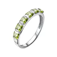 Ювелирный завод выпускает серебряные кольца с камнем хризолит 925 пробы. Минерал имеет характерный оливково-зеленый оттенок. Для защиты металла от окисления и потемнения мастера используют родий или золочение. В каталоге магазина представлены крупные перстни, а также каждое тонкое серебряное кольцо с хризолитом проходит проверку отдела технического контроля. При создании дизайна ювелиры часто комбинируют этот минерал с другими вставками. Вы можете подобрать микс камней, где рядом с основной вставкой закреплены другие полудрагоценные минералы: жадеит, флюорит или фианиты. Средний вес готового изделия составляет от 1,5 до 4 граммов. Каждая страница товара содержит точный артикул, размерную сетку и детальные фото.