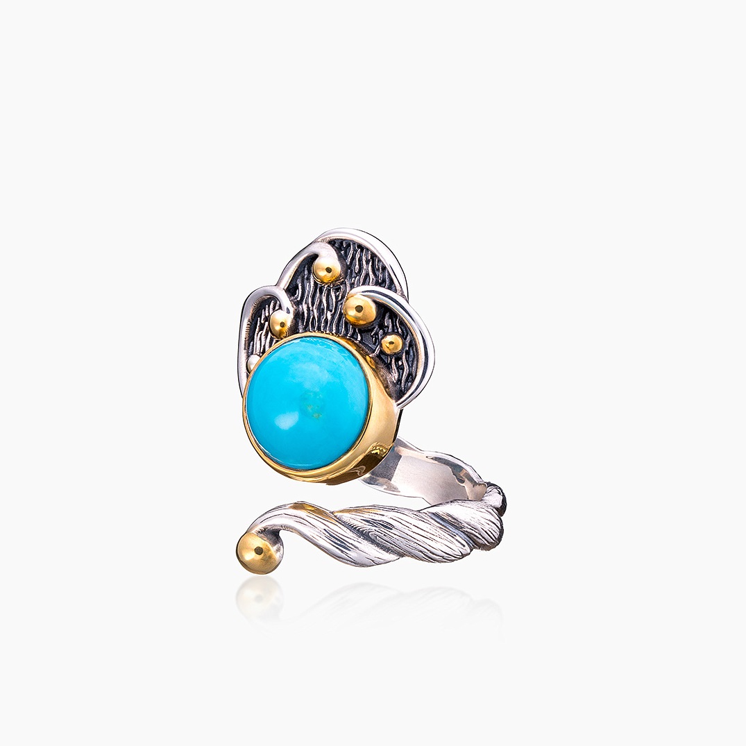 Традиционные мотивы, воплощенные в кольце «Бирюзовый Кокошник, придают изделию неповторимый характер и делают его достойным украшением как для особых моментов, так и для повседневной жизни.