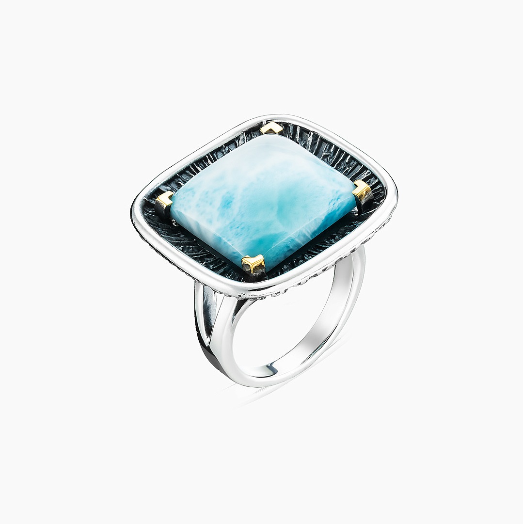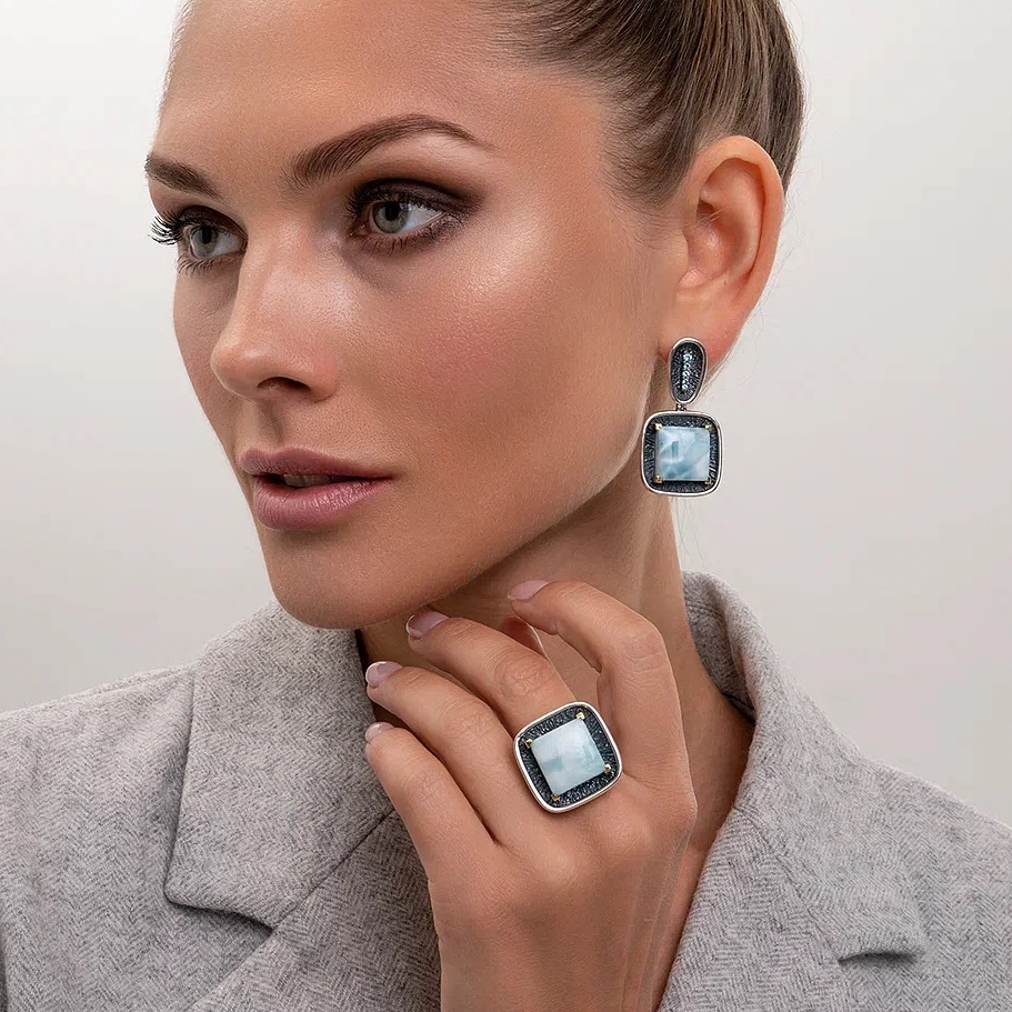Кольцо «Нежность» — воплощение легкости и воздушности. Фактурная формы и отблески ларимара придают особое очарование повседневным образам, будь то романтичные платья или деловые костюмы.