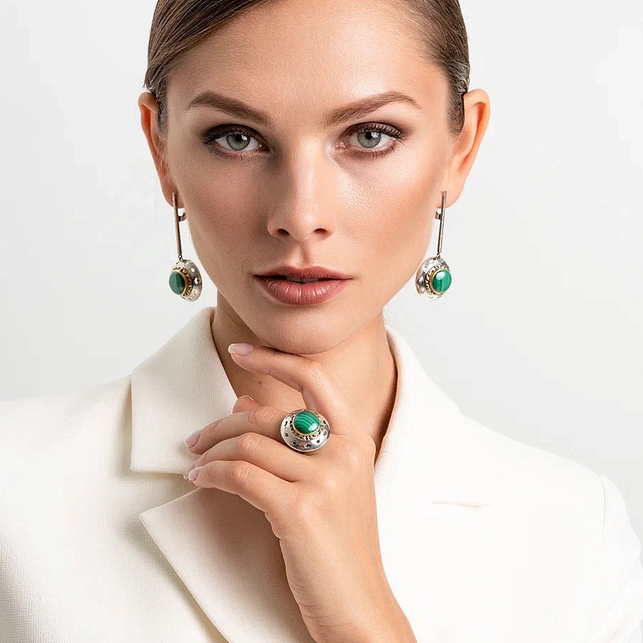 ![]() | Серебряные серьги с малахитом | 35 400 Р |
