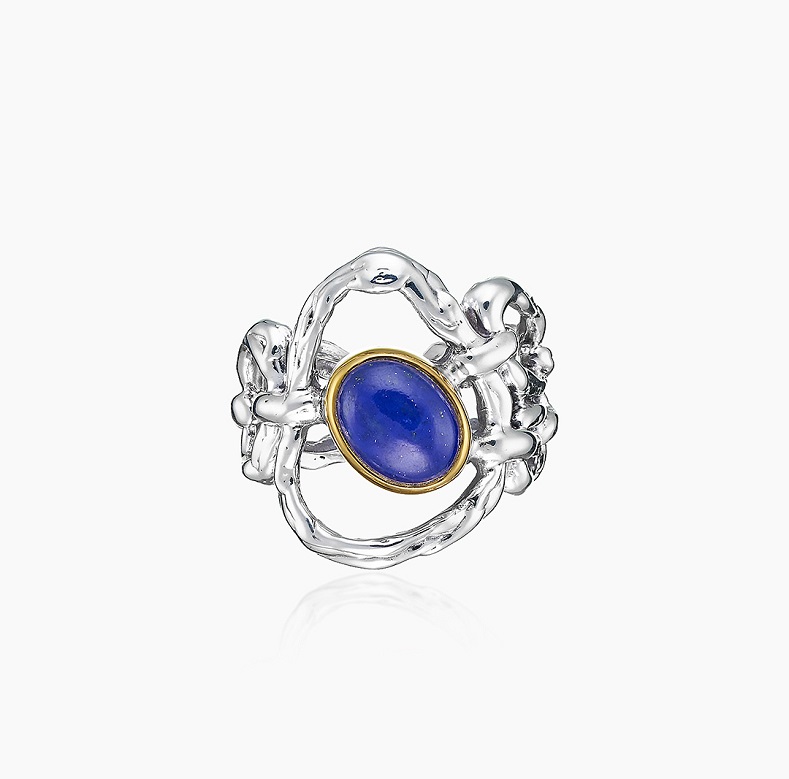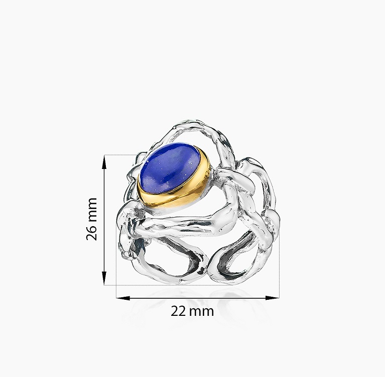 Серебряное кольцо «Лазуревые Оковы» с насыщенным темно-синим лазуритом в центре идеально подходит для особых случаев или в качестве эффектного повседневного украшения.