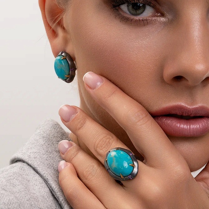 Кольцо «Небесная эра» напоминает нам о том, что каждая деталь жизни несет свою ценность. Бирюза в обрамлении необычной формы из серебра — отличный выбор для тех, кто отдает предпочтение современному стилю.