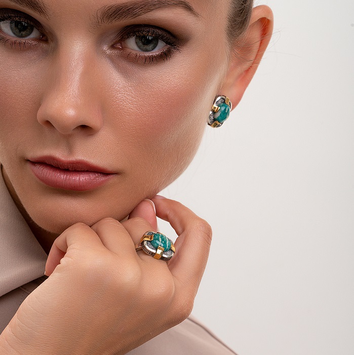 Изделие из аутентичной способно привлечь восхищенные взгляды благодаря эффектному камню и необычному дизайну. Хорошо в сочетании с деловыми костюмами и вечерними нарядами.