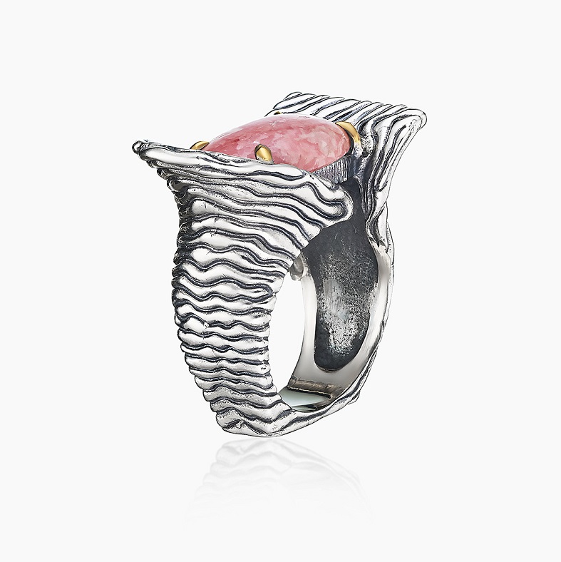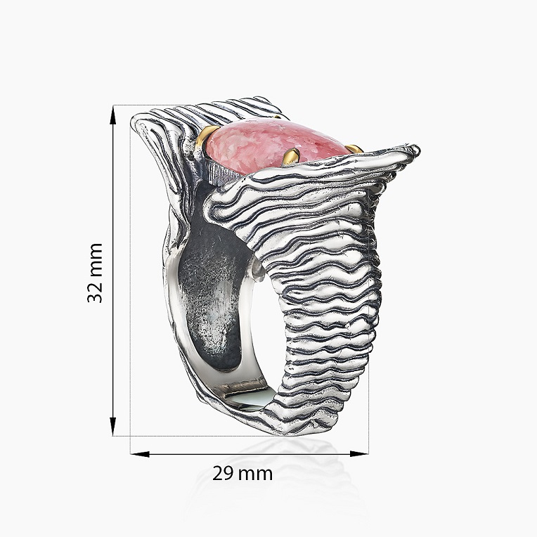 Родохрозит в серебряной оправе создает украшение, которое рассказывает свою историю, притягивая взгляды и подчеркивая вашу индивидуальность. Это кольцо станет идеальным акцентом, добавляя образу нотку изысканности и природной красоты. Подчеркните свою уникальность с этим украшением, вдохновленным гармонией и бесконечностью вариаций стиля.