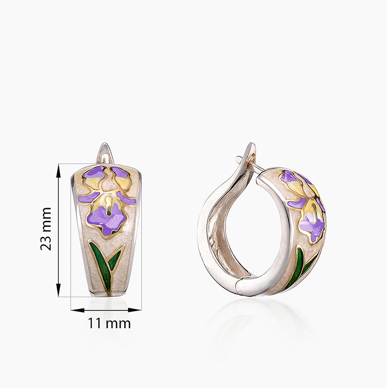 Фиолетовая эмаль, переливающаяся как лепестки ирисов в сумерках, создает украшение, которое подчеркивает вашу естественную красоту. Эти серьги станут идеальным акцентом, добавляя образу нотку роскоши и изысканности. Раскройте свою уникальность с этим украшением, вдохновленным гармонией природы и цветущих садов.