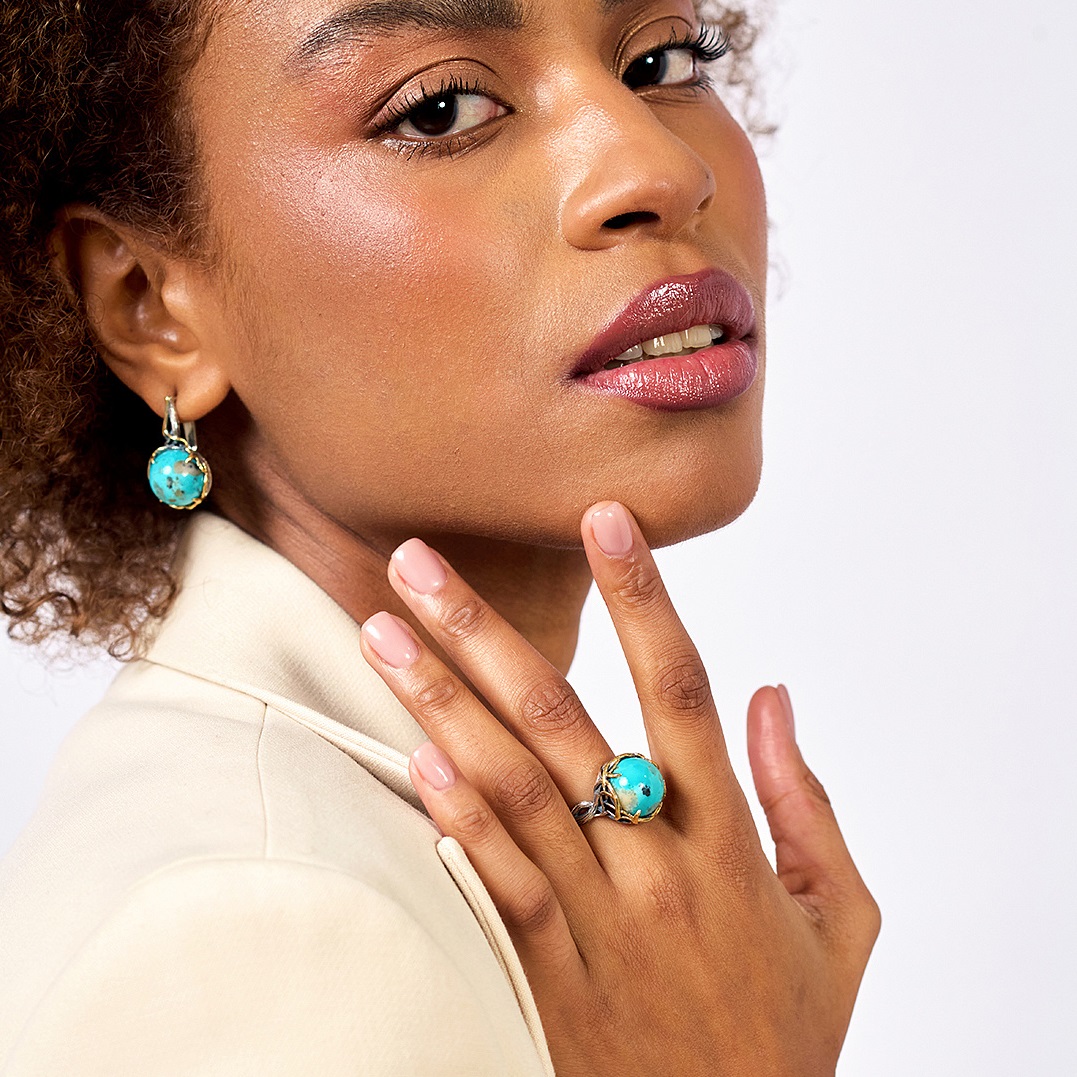 Бирюза в сочетании с серебряной оправой — дорога к древнему водоему, призванная помочь проявить глубину стиля своего обладателя.