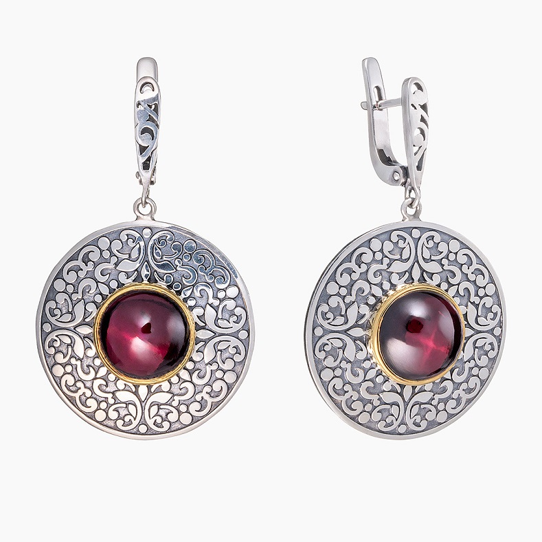Крупные «Арабеска» с насыщенным красным гранатом отлично подходят к праздничным и классическим образам. Выгодно сочетаются с короткой стрижкой или длинными волосами, собранными в пучок или высокий хвост.