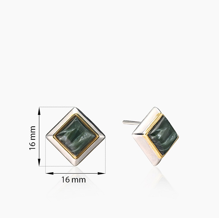 Нежно-зеленый серафинит с перламутровыми разводами и шелковистым блеском подчеркнет утонченность вашего образа. Эти серьги станут идеальным дополнением как к классическому вечернему платью, так и к деловому наряду. Минималистичный дизайн в серебряной оправе добавит изысканности и гармонии вашему стилю.