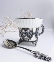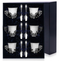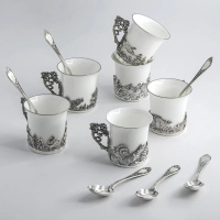 - Материал: чашки и кружки из чистого серебра — практичный и благородный вариант для сервировки, они естественно украсят стол и подчеркнут стиль сервиза.