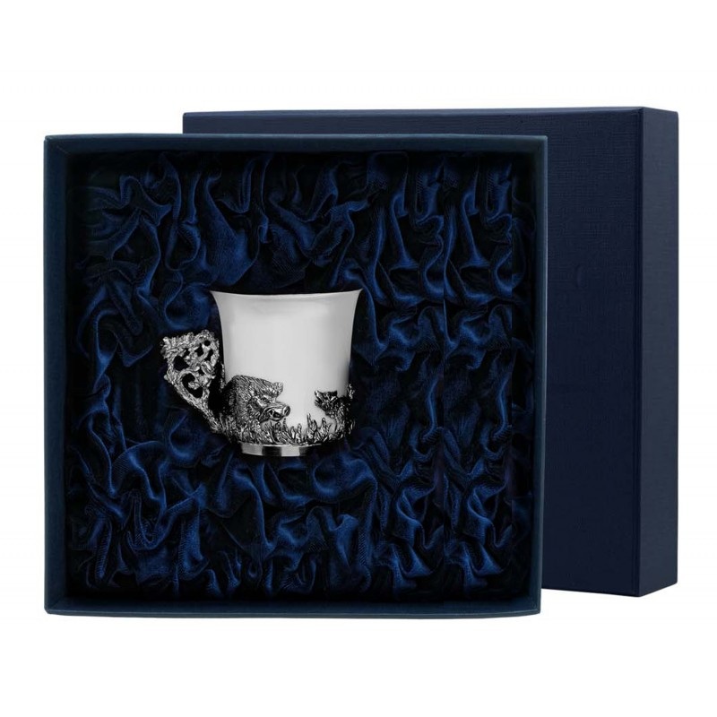 Чашка кофейная «Кабан» с чернением, диаметр - 5.5 см., диаметр с ручкой - 7.9 см., высота - 5.7 см., объем - 60 мл., артикул 539ЧШ07006 - 1 шт. (средний вес 41 гр.)