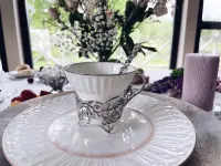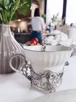 - Материал: чашки и кружки из чистого серебра — практичный и благородный вариант для сервировки, они естественно украсят стол и подчеркнут стиль сервиза.