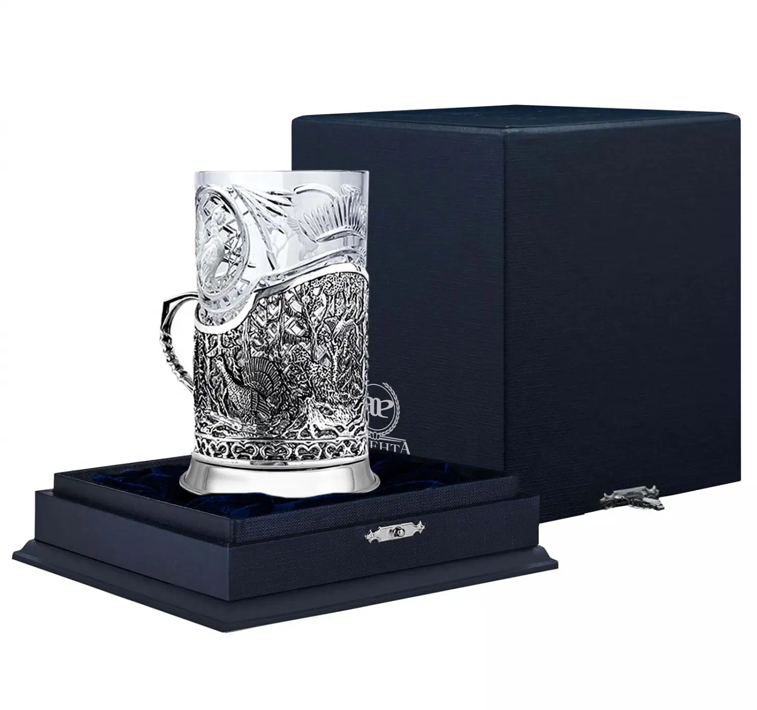 2. Подстаканник "Глухариная охота" литой арт. 411ПС00001 - 1шт. (средний вес 1 х 227 гр. = 227 гр.) Высота: 100 мм. Диаметр: 70 мм.