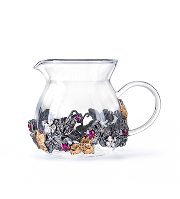 Сосуд молочника «Земляника» выполнен из термостойкого стекла украшенного серебром. Ягодки сделаны из семи корунд-рубинов изящной огранки. Детали выполнены вручную и в полной мере передают атмосферу русского леса, с его вкусными, спелыми, обильными дарами. Произведение займет достойное место в коллекции серебра или станет прекрасным подарком для ценителей ювелирного искусства.