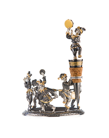 Премиальная подставка под винную бутылку выполнена вручную из серебра. Снабжена ушком под пробочник (поставляемый отдельно).