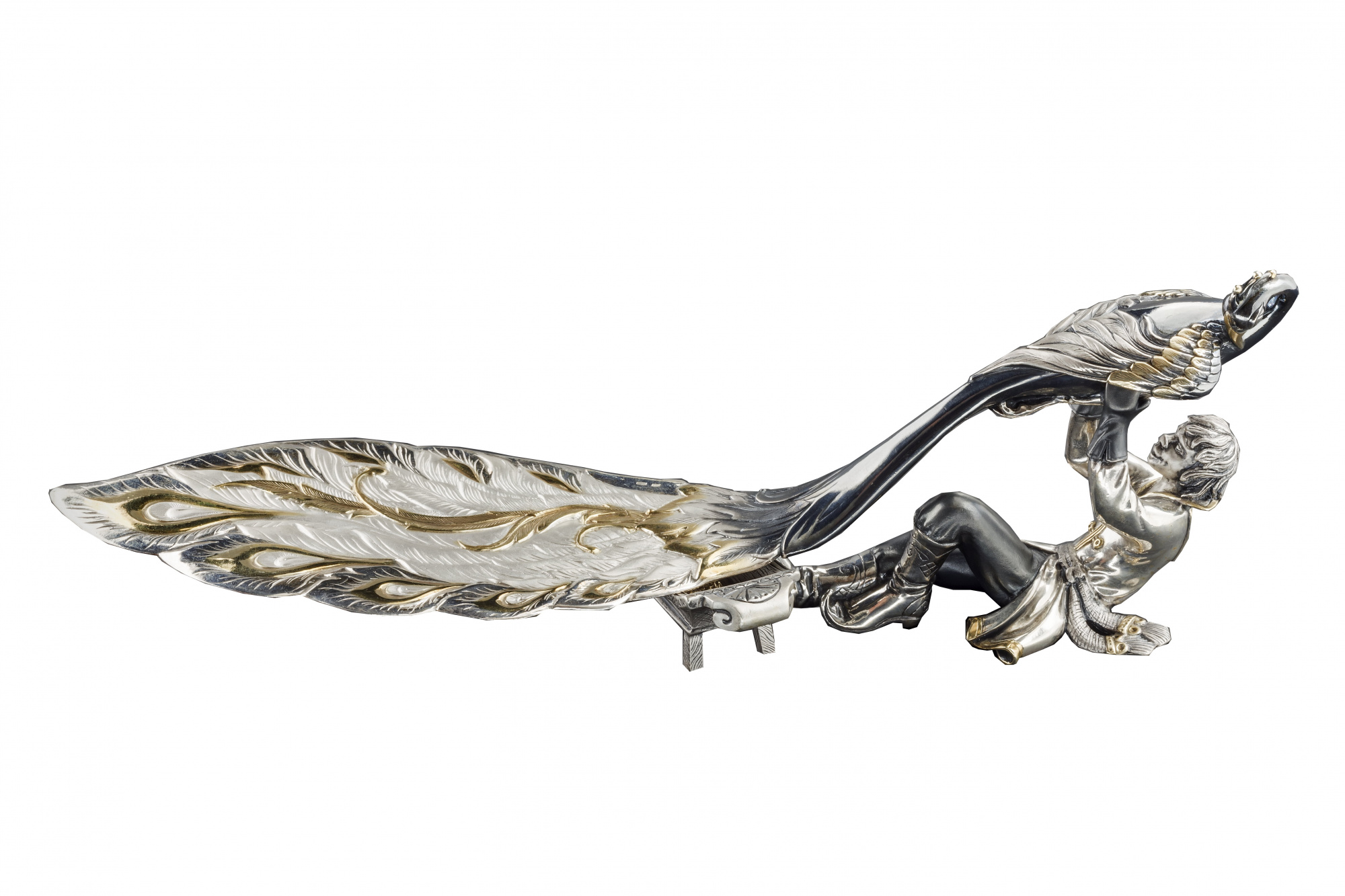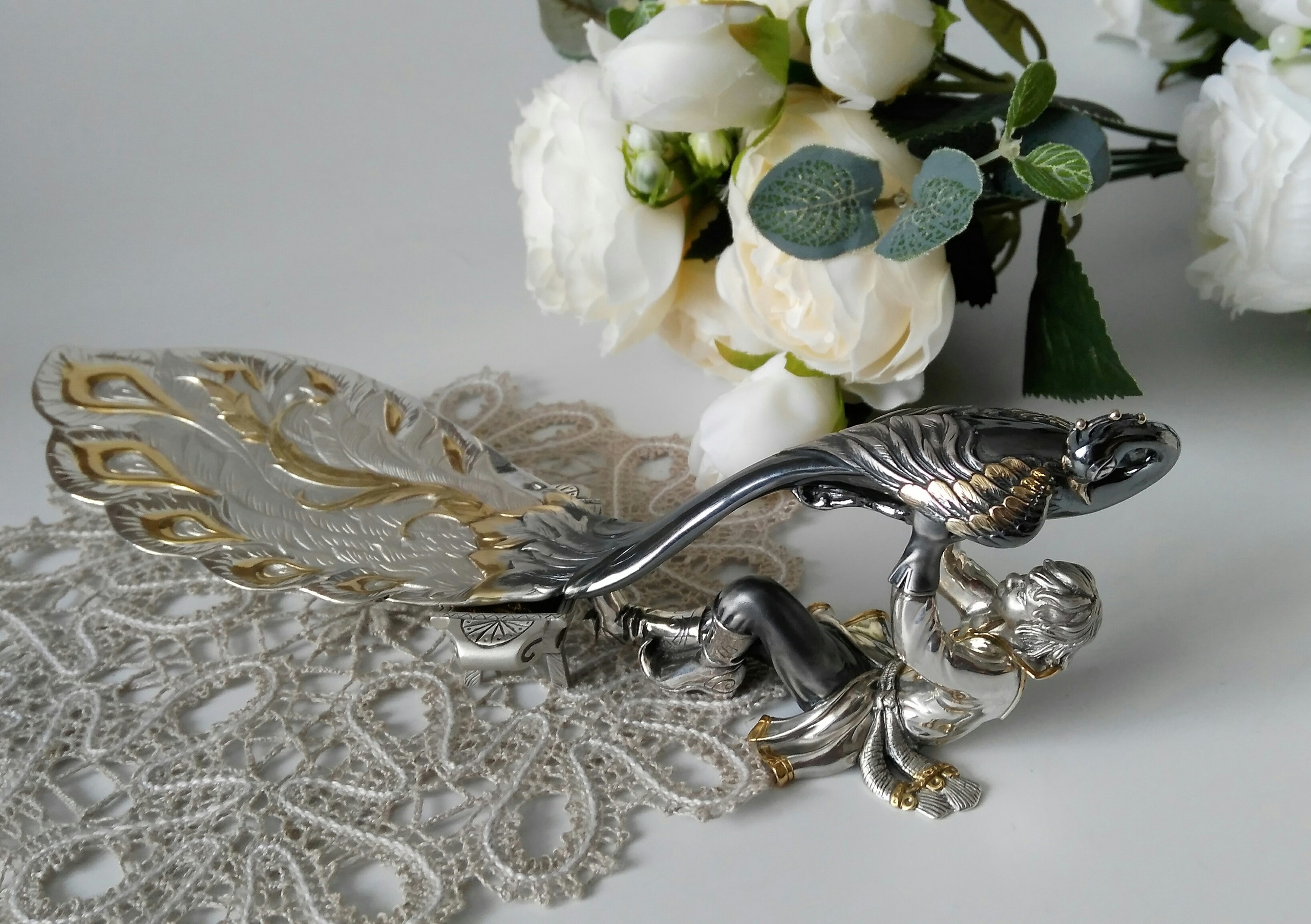 Эксклюзивный набор для торта придется по душе даже самому строгому ценителю юверного искусства. В набор входят два предмета - лопатка для торта "Жар-птица" и подставка для лопатки "Ванька".