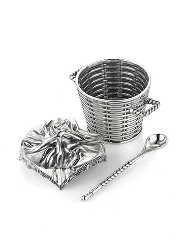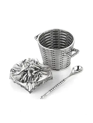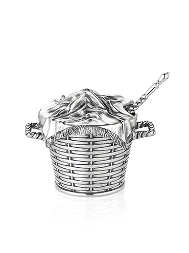 Премиальная солонка в русской интерпретации «trompe l’oeil» выполнена вручную полностью из серебра и упакована в подарочный футляр.