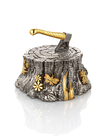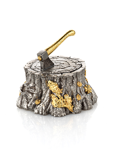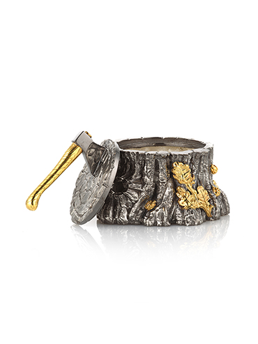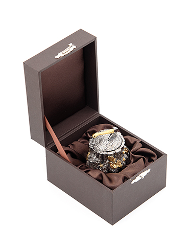 Премиальная солонка в русской интерпретации «trompe l’oeil» выполнена вручную полностью из серебра и упакована в подарочный футляр.