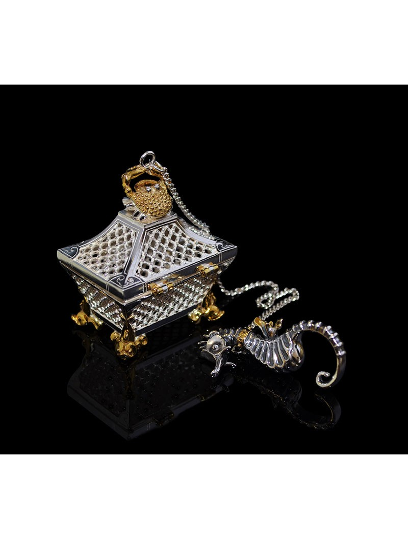 Созданное мастерами-ювелирами высшей категории, это изделие может служить украшением интерьера, а может быть использовано как ионизатор для воды и как ситечко для заварки чая.