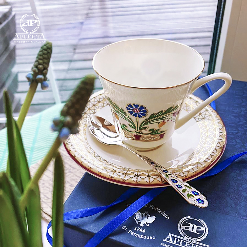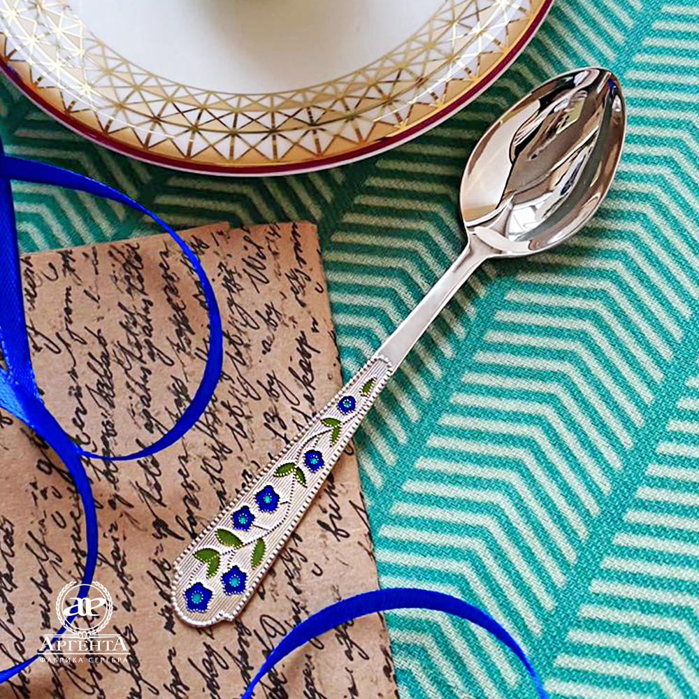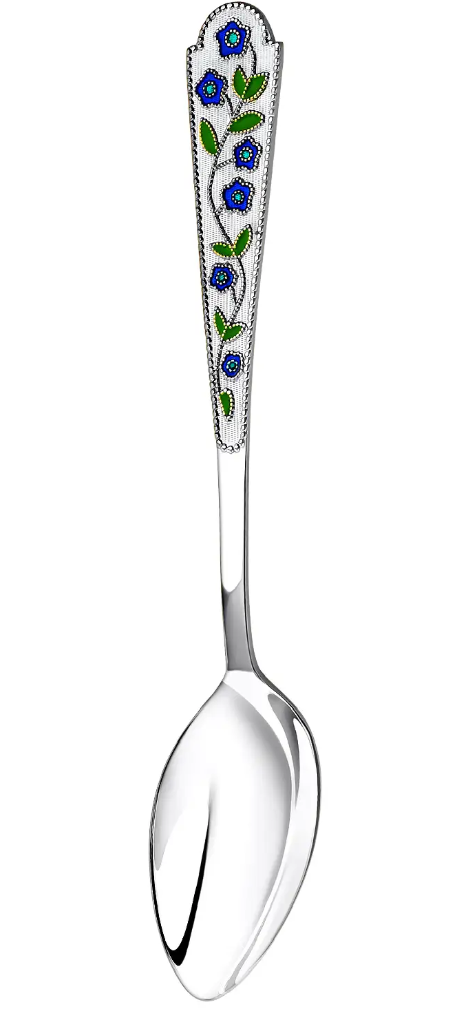 1. Ложка чайная "Лето-Василек" с эмалью арт. 120ЛЖ03007 - 1шт. (средний вес 1 х 36 гр. = 36 гр.) Длина: 145 мм.