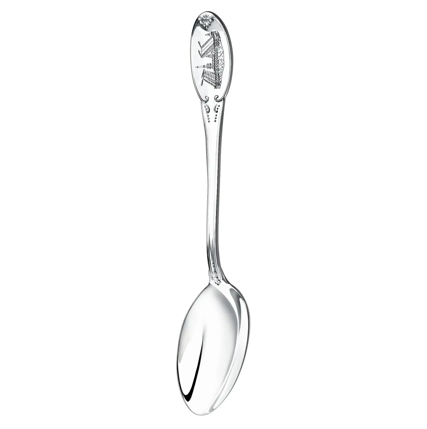 Серебряная чайная ложка с гравировкой в виде мостов.