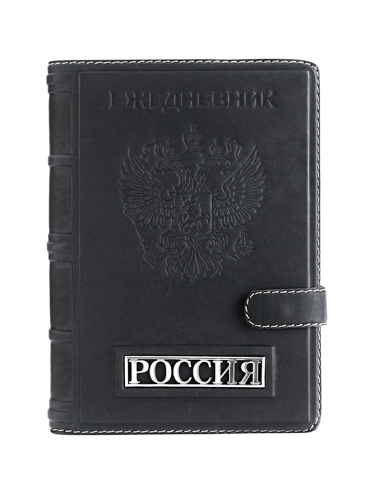 Большой ежедневник формата А5 представительского класса «Россия» выполнен вручную из телячьей кожи и украшен серебряной плакеткой высокой степени проработки. Съемный блок напечатан на качественной мелованной бумаге и украшен трехсторонним золотым обрезом. Может комплектоваться серебряной ручкой, для которой в обложку вшита петля.