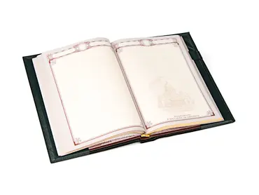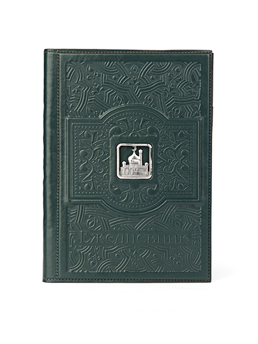 Большой ежедневник формата А5 «Ислам» выполнен вручную из телячьей кожи и украшен серебряной плакеткой высокой степени проработки. Съемный блок напечатан на качественной мелованной бумаге и украшен трехсторонним золотым обрезом. Может комплектоваться серебряной ручкой, для которой в обложку вшита петля.