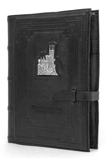 Большой ежедневник формата А5 представительского класса «Крым» выполнен вручную из телячьей кожи и украшен серебряной плакеткой высокой степени проработки.