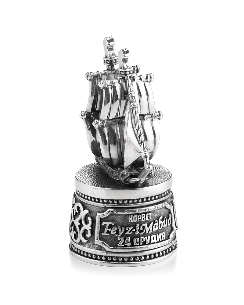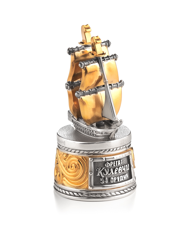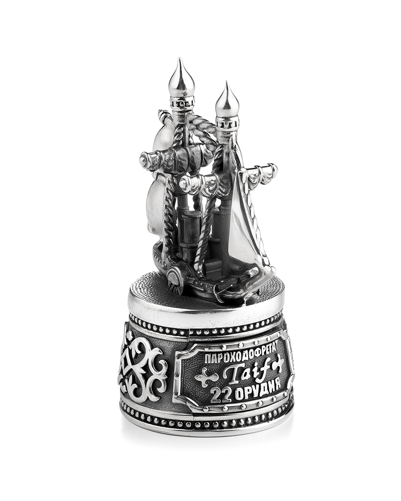 Серебро 925° — средний вес 640 г. Формат: 255 x 253 x 48 мм.