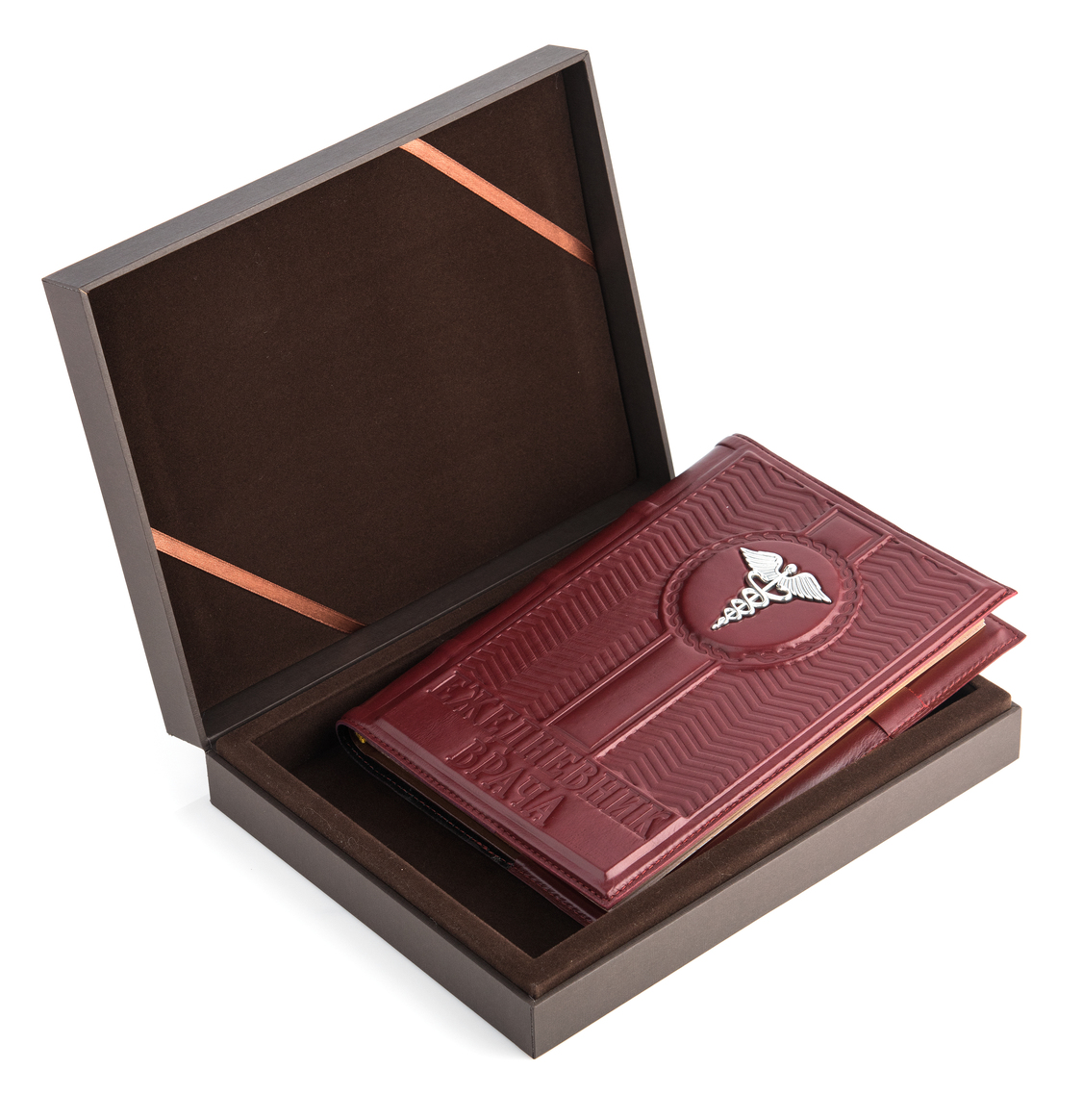 Клейма мастерской и пробирной палаты находятся на центральном элементе композиции ежедневника. Поставляется в подарочном футляре и транспортной коробке.