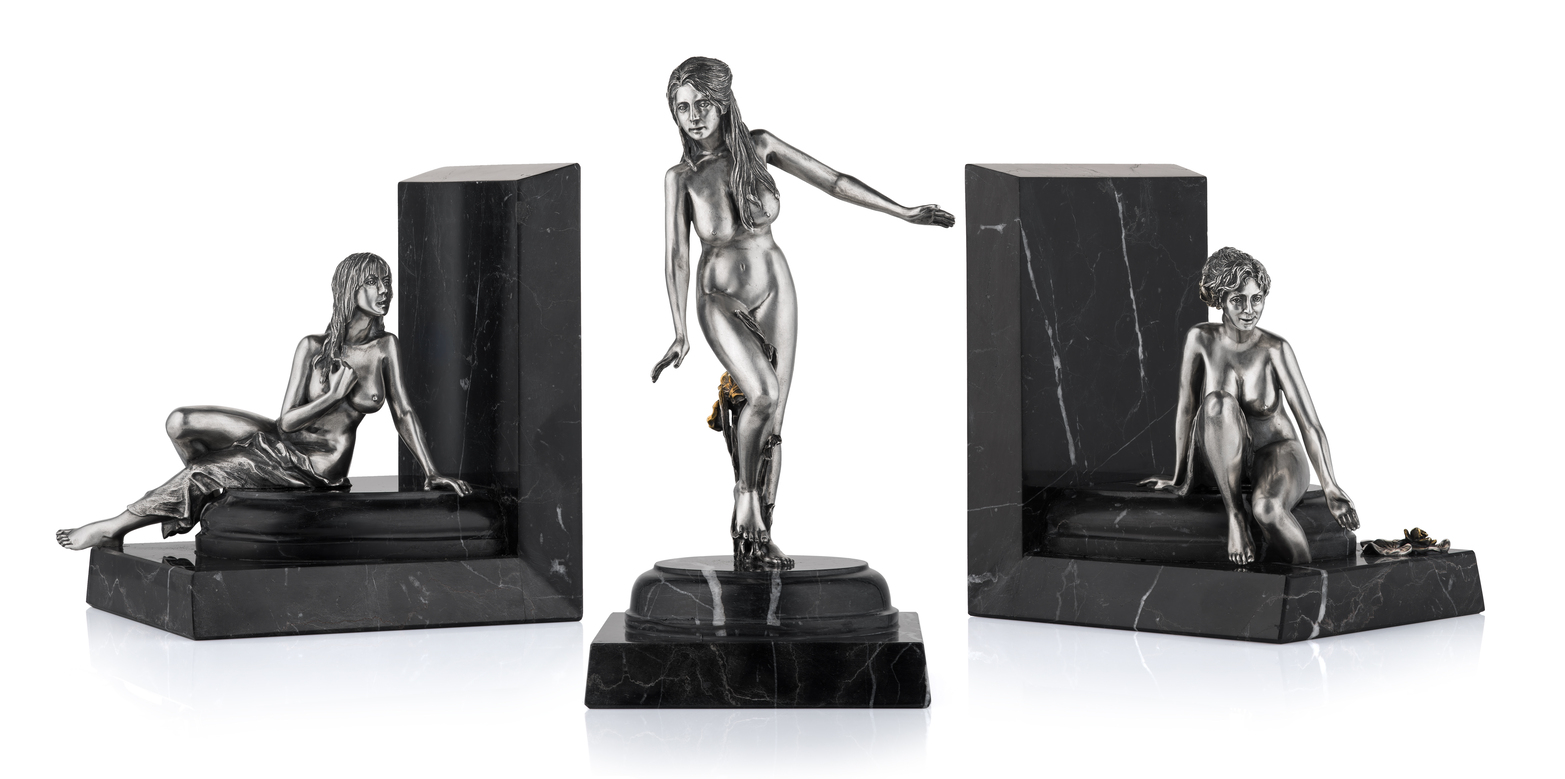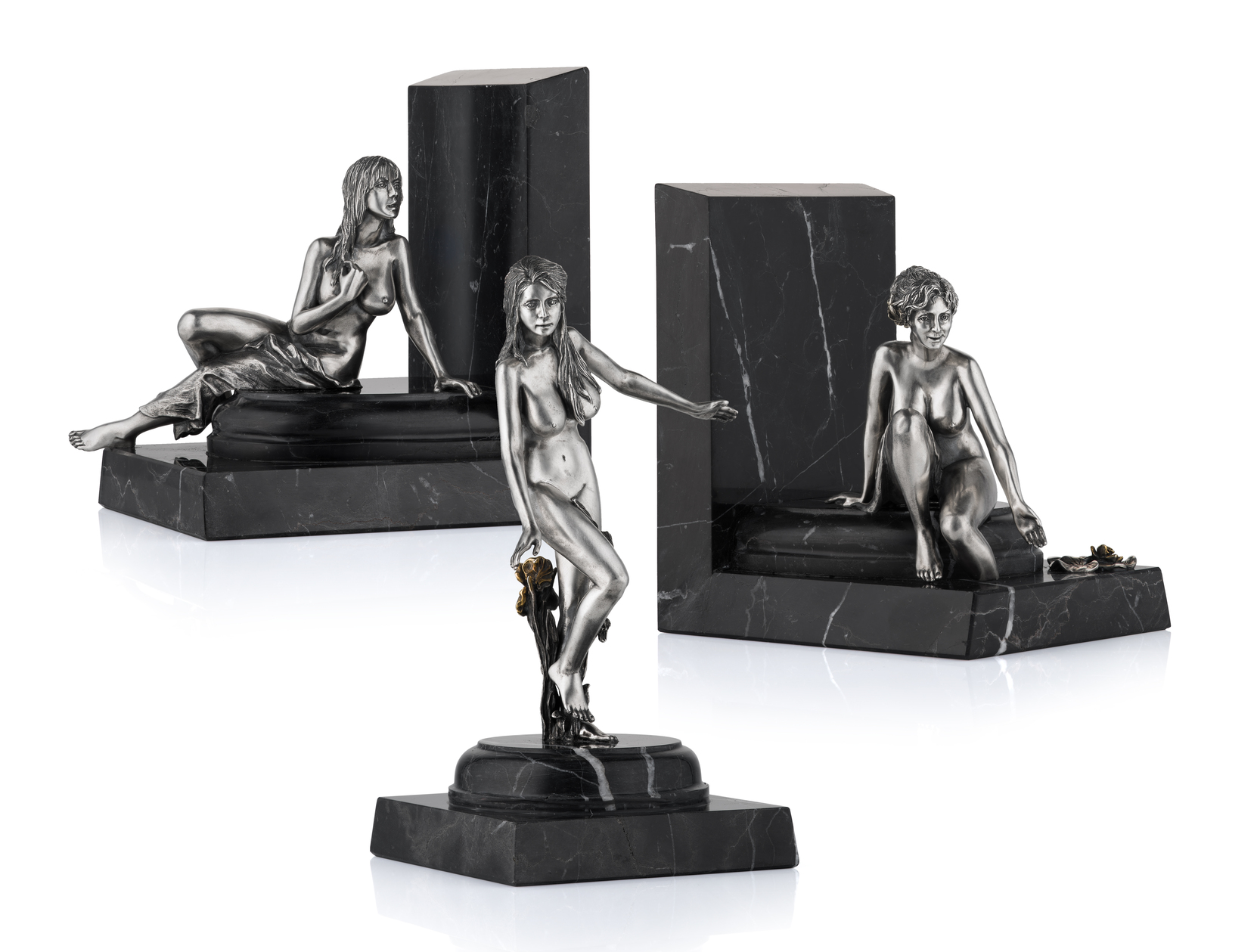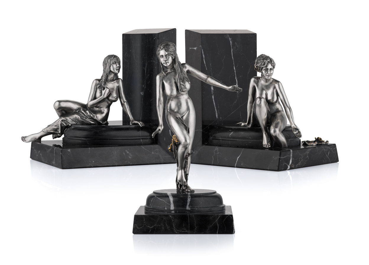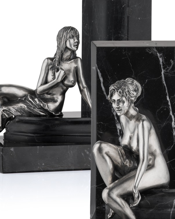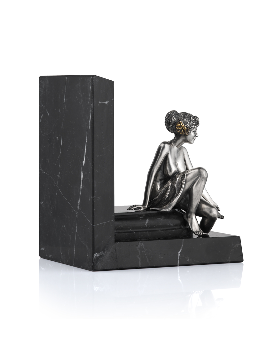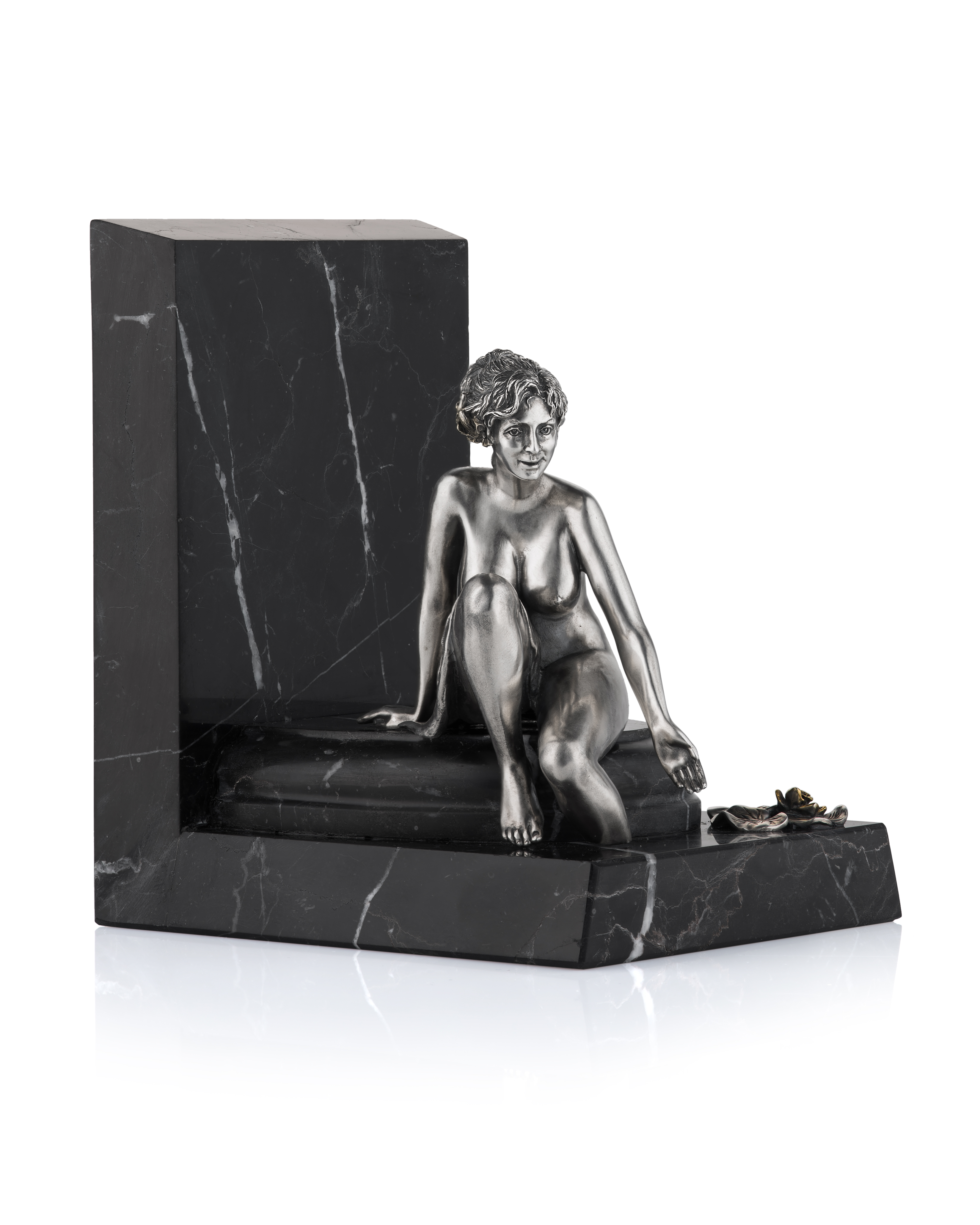 Премиальные книжные упоры «Купальщицы» являются посвящением красоте русских женщин. Скульптор вручную вылепил трех купальщиц на реке, накануне праздника Ивана Купалы. Каждый образ передает свой характер и настроение. Первая женщина, слева, отдыхающая на берегу, является олицетворением немного детской наивности. Вторая, справа, собирающаюся войти в воду, в окружении лилий — веселая. Третья, центральная, с ирисами — любопытная. Все трое представляют собой разноплановый собирательный образ женщины, нарочито выполненной не атлетически сложенной, с большой грудью — «Кровь с молоком».