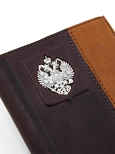 Обложка для документов «Символ» выполнена вручную из телячьей кожи и украшена серебряной плакеткой высокой степени проработки.