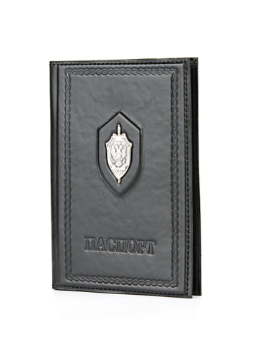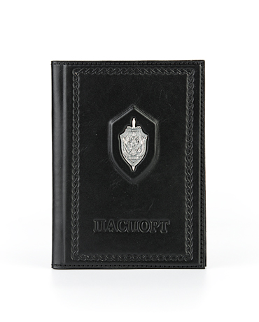 Обложка для паспорта «ФСБ» выполнена вручную из телячьей кожи и украшена серебряной плакеткой.