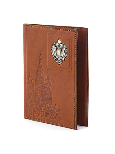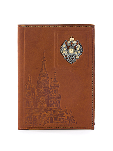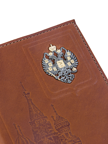 Обложка для паспорта представительского класса «Отчизна» выполнена вручную из телячьей кожи и украшена серебряным гербом царской России высокой степени проработки.