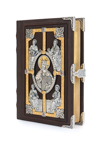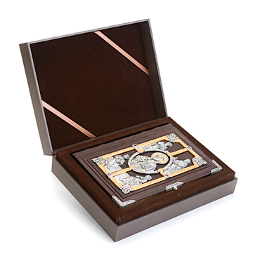 Снабжена закладкой и украшена трехсторонним золотым обрезом.