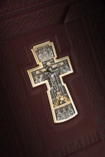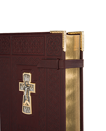 Переплет книги изготовлен вручную из телячьей кожи натурального дубления с сохраненной естественной фактурой.