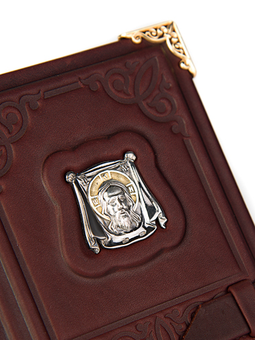 Переплет книги изготовлен из кожи натурального дубления с сохраненной естественной фактурой.
