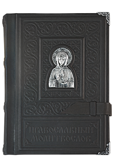 Молитвослов украшен серебряной иконой Матроны Московской.
