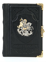 Переплет книги изготовлен из кожи натурального дубления с сохраненной естественной фактурой.